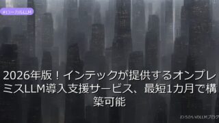 ローカルLLM 2026年版!インテックが提供するオンプレミスLLM導入支援サービス、最短1カ月で構築可能 インテックが2026年1月に開始したオンプレミスLLM導入支援サービス。機密データの保護とコスト削減を実現し、最短1カ月で構築可能。詳しくはこちら 2026.01.31 ローカルLLM