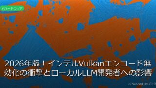 ハードウェア 2026年版!インテルVulkanエンコード無効化の衝撃とローカルLLM開発者への影響 インテルが2026年新型GPUでVulkanエンコードを無効化!ローカルLLM開発者への影響と対策を徹底解説。今すぐチェック! 2026.02.05 ハードウェア