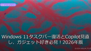 AIコーディング Windows 11タスクバー復活とCopilot見直し、ガジェット好き必見!2026年版 Windows 11のタスクバー移動機能復活とCopilot統合見直しを徹底解説!ガジェット好き必見。詳しくはこちら→ 2026.03.21 AIコーディング