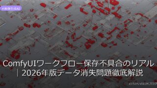 画像生成AI ComfyUIワークフロー保存不具合のリアル|2026年版データ消失問題徹底解説 ComfyUIのワークフロー保存不具合でデータ消失が相次ぐ!Redditユーザーの実体験と対策を公開。AIクリエイター必見の深刻な問題を解明。 2026.03.16 画像生成AI