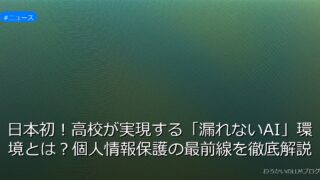ニュース 日本初!高校が実現する「漏れないAI」環境とは?個人情報保護の最前線を徹底解説 教育現場のAI活用で悩む個人情報漏洩問題。東京都の私立高校が実現した「漏れないAI」環境を徹底解説。今すぐチェック! 2026.01.31 ニュース