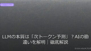 ローカルLLM LLMの本質は「次トークン予測」?AIの勘違いを解明|徹底解説 AIが「思考」していると勘違いする理由を解明!LLMの本質は「次トークン予測」です。詳しくはこちら→ 2026.03.10 ローカルLLM