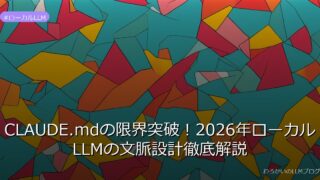 ローカルLLM CLAUDE.mdの限界突破!2026年ローカルLLMの文脈設計徹底解説 CLAUDE.mdだけでは限界!ローカルLLMの文脈設計で爆速開発を実現。今すぐチェック! 2026.04.01 ローカルLLM