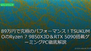 ハードウェア 89万円で究極のパフォーマンス!TSUKUMOのRyzen 7 9850X3D&RTX 5090搭載ゲーミングPC徹底解説 TSUKUMOがRyzen 7 9850X3DとRTX 5090を搭載した89万円のゲーミングPCを発売!4K/8Kゲームの究極パフォーマンスを体験できます。詳しくはこちら→ 2026.01.31 ハードウェア