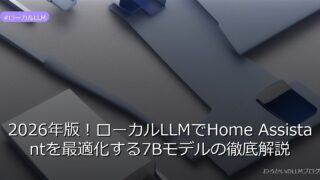 ローカルLLM 2026年版!ローカルLLMでHome Assistantを最適化する7Bモデルの徹底解説 8GB VRAMで動く7Bモデルがスマートホームを進化!プライバシー保護と即時性を実現するローカルLLMの実力と、Home Assistantの最適化方法を詳しく解説。詳しくはこちら→ 2026.03.29 ローカルLLM