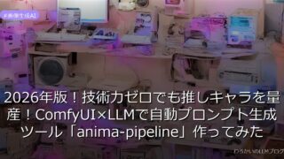 画像生成AI 2026年版!技術力ゼロでも推しキャラを量産!ComfyUI×LLMで自動プロンプト生成ツール「anima-pipeline」作ってみた ComfyUIとLLMを活用した自動プロンプト生成ツール「anima-pipeline」で、技術力ゼロでも推しキャラを簡単に量産!作業時間を70%短縮する方法を徹底解説。詳しくはこちら! 2026.03.20 画像生成AI