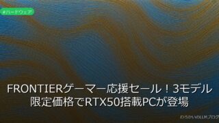 ハードウェア FRONTIERゲーマー応援セール!3モデル限定価格でRTX50搭載PCが登場 FRONTIERが期間限定でRTX50搭載PCを特別価格で販売!FRGHLB550/WS0105/NTKの3モデルが219,800円で登場。即完売の可能性あり。 2026.01.20 ハードウェア