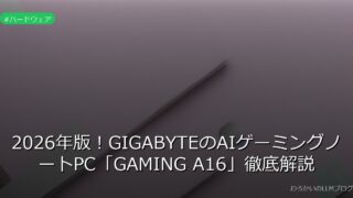 ハードウェア 2026年版!GIGABYTEのAIゲーミングノートPC「GAMING A16」徹底解説 2026年発売のGIGABYTE GAMING A16はAI性能440TOPS!音声操作やオーバークロック最適化を搭載。ゲーミングPCの新時代をチェック→ 2026.02.23 ハードウェア