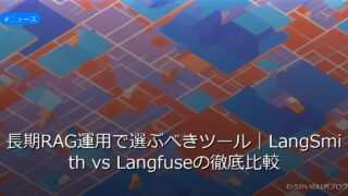 ニュース 長期RAG運用で選ぶべきツール|LangSmith vs Langfuseの徹底比較 長期RAG運用におけるLangSmithとLangfuseの選定基準を解説。コスト、セキュリティ、運用負荷を比較し、最適なツール選びのポイントを徹底分析。詳しくはこちら! 2026.01.21 ニュース