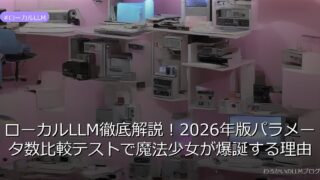 ローカルLLM ローカルLLM徹底解説!2026年版パラメータ数比較テストで魔法少女が爆誕する理由 ローカルLLMでクラウド制限を突破!2026年版パラメータ数比較テストで衝撃の結果が明らかに。魔法少女が誕生するモデルとは?詳しくはこちら→ 2026.02.10 ローカルLLM