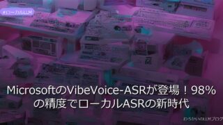 ローカルLLM MicrosoftのVibeVoice-ASRが登場!98%の精度でローカルASRの新時代 MicrosoftがHugging Faceに公開したVibeVoice-ASRは、98%の精度でローカルASRの新時代を切り開く。リアルタイム字幕や音声メモアプリで革命を起こす可能性を秘めるモデルを詳しくチェック! 2026.01.22 ローカルLLM