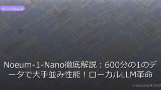 ローカルLLM Noeum-1-Nano徹底解説:600分の1のデータで大手並み性能!ローカルLLM革命 Noeum-1-Nanoが180億トークンで大手モデルと同等の性能を実現!個人開発者・中小企業向けのローカルLLM革命を詳しく解説。今すぐチェック! 2026.01.27 ローカルLLM