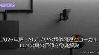ローカルLLM 2026年版:AIアプリの類似問題とローカルLLMの真の価値を徹底解説 AIアプリの類似問題とローカルLLMの真の価値を解説。2026年の現状と今後の展望を徹底分析。詳しくはこちら! 2026.01.24 ローカルLLM
