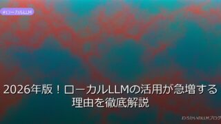 ローカルLLM 2026年版!ローカルLLMの活用が急増する理由を徹底解説 ローカルLLMの活用が急増する理由を解説!プライバシー保護とコスト削減のメリットを徹底分析。Ollamaや量子化技術の最新動向もチェック。 2026.01.24 ローカルLLM