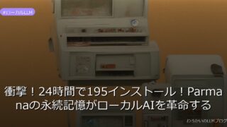 ローカルLLM 衝撃!24時間で195インストール!Parmanaの永続記憶がローカルAIを革命する ローカルAIの常識を覆すParmanaが登場!24時間で195インストールの衝撃。永続記憶でAIがPC内で覚えてくれる仕組みを徹底解説。今すぐチェック! 2026.04.03 ローカルLLM
