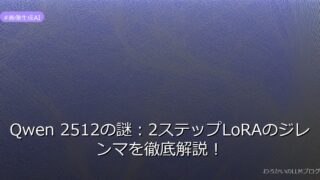 画像生成AI Qwen 2512の謎:2ステップLoRAのジレンマを徹底解説! Qwen 2512の2ステップLoRAジレンマを解明!Redditユーザーが暴露するテクスチャ劣化の謎と解決策を徹底解説。今すぐチェック! 2026.02.09 画像生成AI