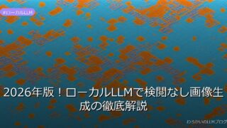 ローカルLLM 2026年版!ローカルLLMで検閲なし画像生成の徹底解説 ローカルLLMで検閲なしのNSFW画像生成が話題!2026年の現実と課題を解説。ハードウェア要件や法的リスクもチェック。詳しくはこちら→ 2026.02.25 ローカルLLM