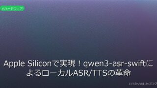ハードウェア Apple Siliconで実現!qwen3-asr-swiftによるローカルASR/TTSの革命 Apple Siliconユーザー必見!qwen3-asr-swiftでローカルASR/TTSを実現。52言語対応でリアルタイム音声処理が可能に。詳しくはこちら! 2026.02.15 ハードウェア