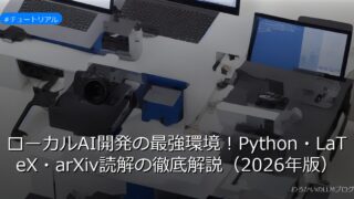 チュートリアル ローカルAI開発の最強環境!Python・LaTeX・arXiv読解の徹底解説(2026年版) ローカル環境でAI開発を加速!Python・LaTeX・arXiv読解のノウハウを徹底解説。jjやHugging Face活用術も紹介。今すぐチェック! 2026.02.20 チュートリアル