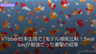 ローカルLLM VTuber台本生成で7モデル徹底比較!Swallowが最強だった衝撃の結果 AI VTuber開発者が7モデルを実用テスト!Swallowが最強だった衝撃の結果。ローカルLLM選定のリアルな難しさと考察を公開。詳しくはこちら→ 2026.02.23 ローカルLLM